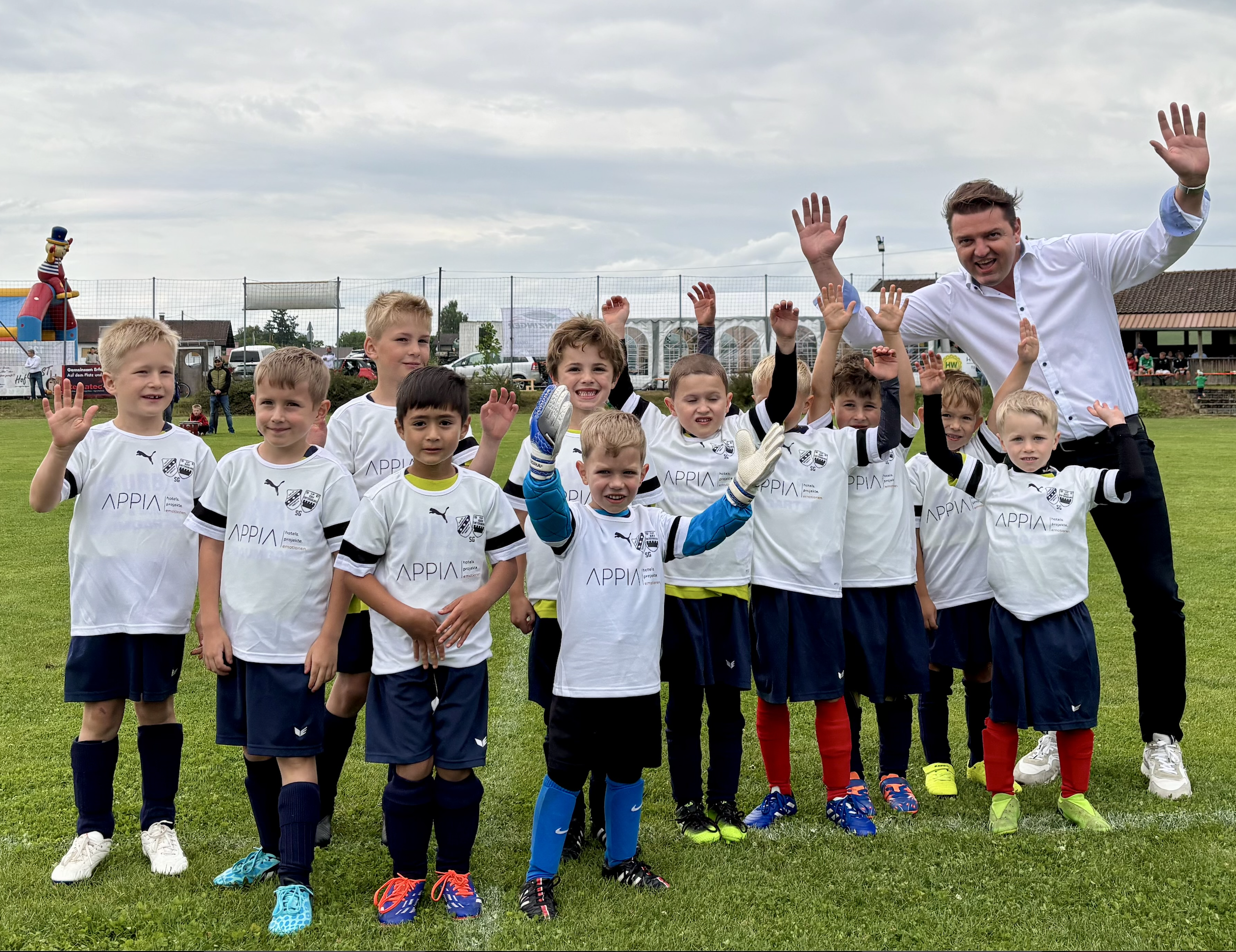 Als Einlagespiel durften wieder unsere jüngsten ran, Die G- Jugend spielte hier gegen den SV Schönau. Die Spieler der G-jugend durfte sich aber vor dem Spiel noch über eine Trikotspende der Fa. Appia freuen.