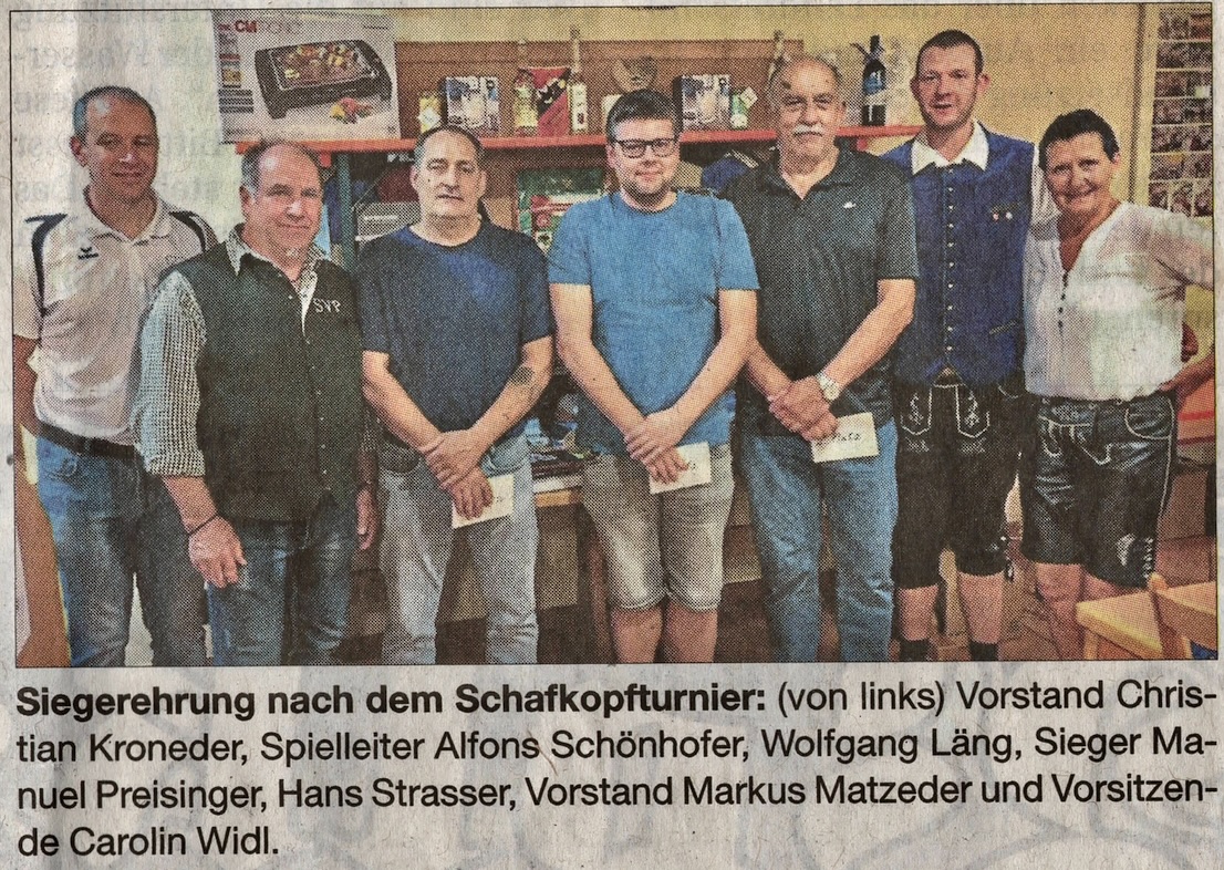 Begonnen wurde auch 2023 wiederum mit einem Schafkopfturnier am Freitagabend im Vereinsheim. An 21 Tischen zeigten 84 Spieler welche Karten sie geschickt und taktisch klug ausspielen müssen, um schließlich einen der schönen Preise zu gewinnen. Die besten Karten schien dabei Gerhard Heilmeier aus Johanniskirchen erhalten zu haben, den er belegte den 1. Platz. Platz 2 ging an Anton Bachl aus Ering am Inn, gefolgt von Robert Copp aus Eggenfelden. Den Sprung aufs Trepperl schafften knapp nicht mehr Marcus Weigl aus Brombach (4. Platz) und Franz Reiter, Arnstorf (5. Platz). Gratuliert wurde den erfolgreichen „Kartlern“ von Organisator „Mungo“ Alfons Schönhofer.