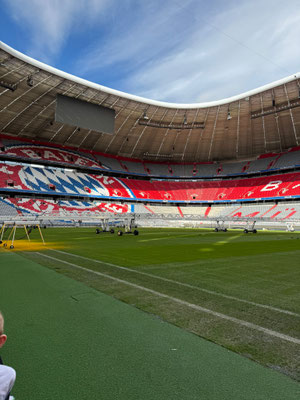 Mit dem Busunternehmen Grammelsberger aus Neuhofen starteten die Ausflügler vom Sportheim Richtung München. Ziel war hier als erstes die Motorworld. Bei einer Führung durch die Hallen durften Old- und Youngtimer aber auch aktuelle Sport-und Edelkarossen bestaunt werden. Als nächstes ginge weiter zur Allianz Arena, wo für 14:00 Uhr eine Führung gebucht war. Auch für nicht Bayern Fans war dies eine sehr interessante Tour, bei der Spielerkabine, Spielertunnel, Ersatzbank oder Presseraum besichtigt werden konnten. Das angrenzende FCB Museum wurde dann jeder auf eigene Faust erkunden. Auf dem Nachhauseweg kehrten die Teilnehmer noch beim Sonnenhof Lehmeier in Reisbach ein. Dort wartete schon ein Buffet mit bayrischen Schmankerl. Um 20:00 Uhr ging's dann in ausgelassener Stimmung wieder zurück nach Baumgarten.